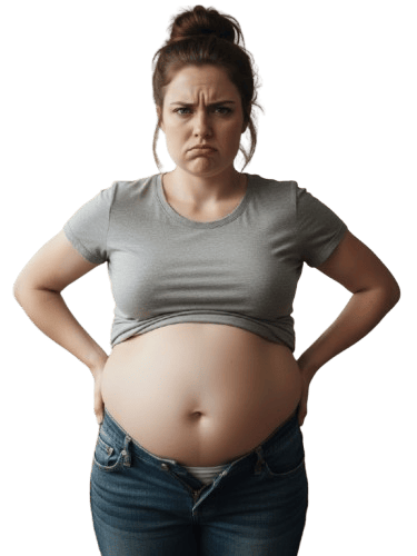 Barriga que não diminui: Mesmo comendo pouco, a gordura abdominal permanece.